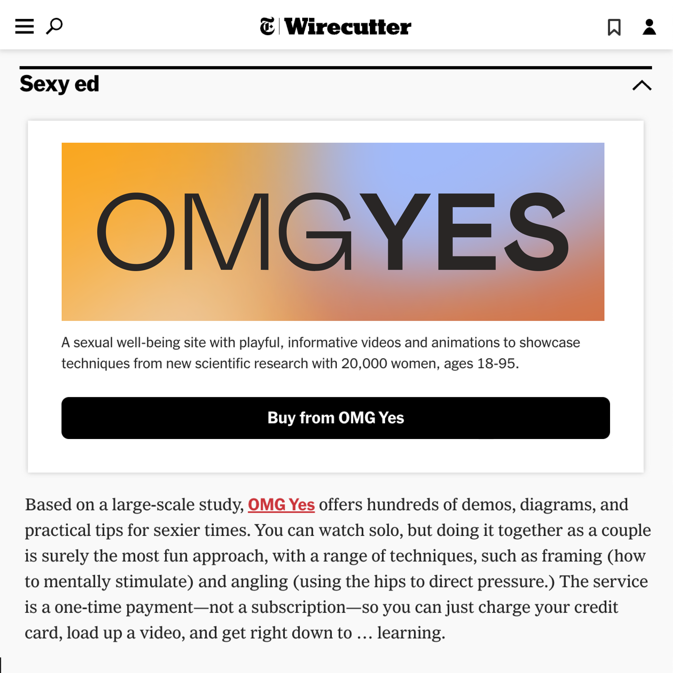 Affiliate link: Just like with Wirecutter, if you purchase OMGYES through my link, it helps support my work! So thanks in advance. And if you have a friend who would benefit from this article - send it on! 🥰