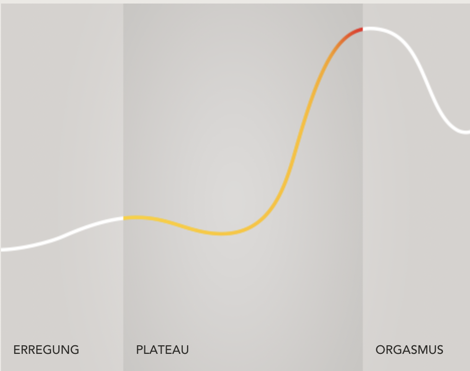 Heute kann ich meinem Freund nicht nur sagen, dass er „dranbleiben“ soll, sondern auch wann er das tun soll. An der Uni habe ich einen Kurs über Sexualität besucht und dort hat man uns eine Grafik mit den Phasen der Lust gezeigt. Die Forscher*innen von OMGyes haben noch eine weitere Phase gefunden: und zwar zwischen dem Aufbau der Lust und dem Orgasmus. Und genau das ist die Phase, in der das „Dranbleiben“ so wichtig ist. Auf mich trifft das voll und ganz zu.